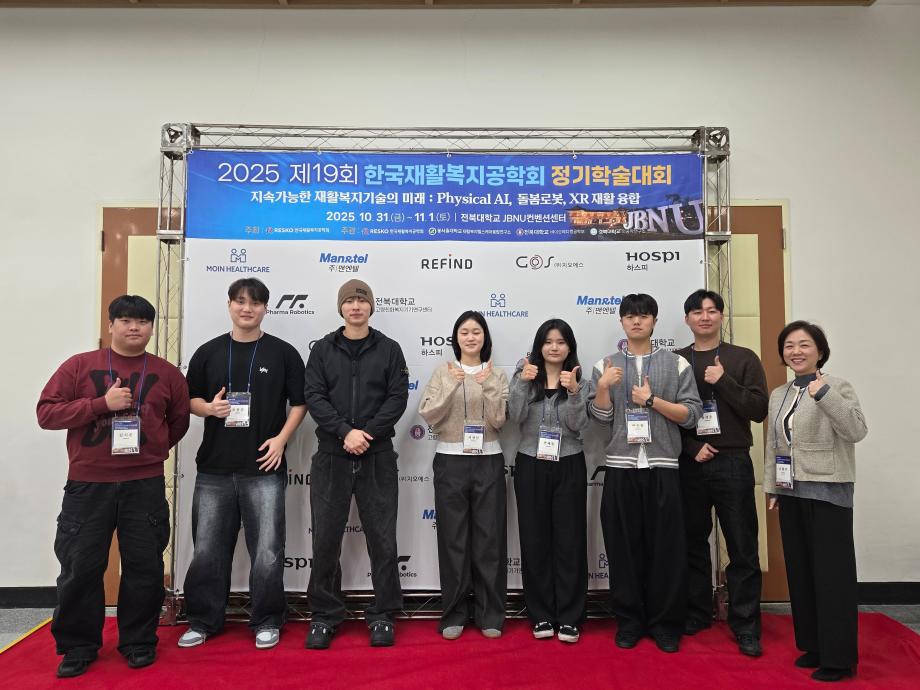 물리치료학과와 의공학과 연합팀이 ‘2025년 제19회 한국재활복지공학회 정기학술대회 학부생 논문경진대회’에서 대상과 우수상을 동시에 수상했다고 3일 밝혔다. 이번 학술대회는 지난 10월 31일 전북대학교 JBNU 컨벤션센터에서 개최됐으며, “지속가능한 재활복지기술의 미래: Physical AI·돌봅로봇·XR재활융합” 을 주제로 국내 재활복지공학 분야의 최신 기술과 연구 성과가 발표됐다. 대상 수상팀은 물리치료학과 전혜원·여정민·박순범·방성우 학생과 의공학과 김시온·이예찬·조용준 학생으로 구성됐으며, “파킨슨병 환자의 임상증상에 기반한 AR–MediaPipe 기반 인터랙티브 재활운동 콘텐츠 개발” (지도교수: 의공학과 태기식, 물리치료학과 이현주)이라는 주제로 연구를 진행했다. 본 연구는 파킨슨병 환자의 주요 증상인 운동완서(Bradykinesia), 안정 시 떨림(Tremor), 근육강직(Rigidity)에 초점을 맞춰, 맞춤형 재활훈련 콘텐츠를 개발한 것이 특징이다. 물리치료학과에서는 임상적 운동 특성을 분석하여 콘텐츠를 개발하고, 의공학과에서는 증강현실(AR) 기반 훈련게임 및 플랫폼을 구현해 환자 특성에 따른 재활효과를 검증했다. 이와 같은 융합 연구는 기술적 창의성과 임상적 실용성을 모두 인정받아 높은 평가를 받았다. |