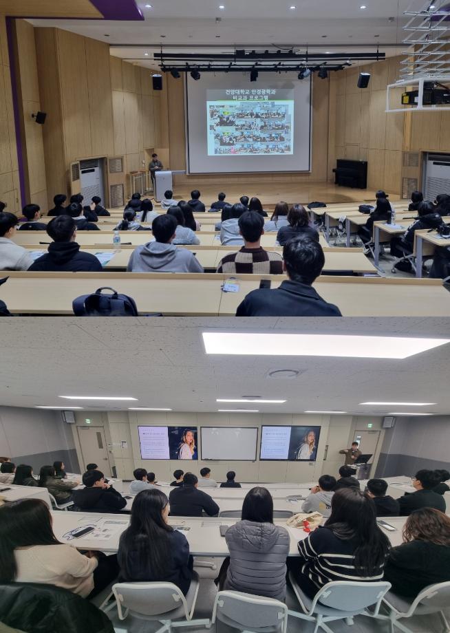 또한 전공 특강 및 학과 프로그램 체험으로 안경광학의 전공에 빠져보았으며, 글로벌 의료기기 기업에서 활약 중인 동문 선배의 진로 특강을 통해 안경사 면허를 활용한 디양한 취업 분야와 현실적인 취업 준비 팁을 얻는 뜻깊은 시간을 가졌습니다.