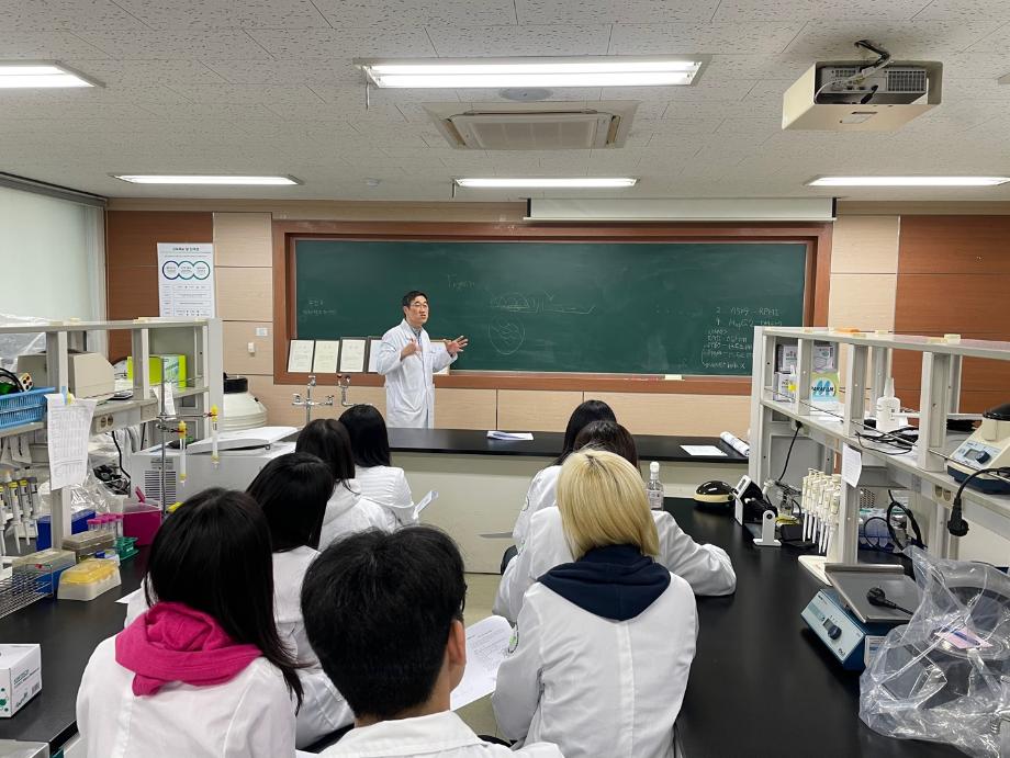 가. 프로그램명: 모의진단 워크숍 나. 프로그램 운영 내용 1) 전문임상병리사 양성을 위한 전문화된 6개 영역의 특성화 교육과정 및 각 분야별 실습 워크숍으로 운영 2) 분야별 교육 및 실습을 통한 직간접 경험과 기본 의생명 연구분야에서 사용되는 이론을 병합하여 교육 후 분야별 특화된 장비를 사용하여 샘플시료를 분석할 수 있는 시간으로 운영 3) 전공별 교수자의 워크숍 이론 강의 후 조별 편성을 통해 각 주제에 해당 되는 실습을 진행 함. 소규모 인원으로 진행되기에 조당 편성 인원은 3~4명으로 모든 조원들이 실습에 참여 할 수 있는 기회 제공
