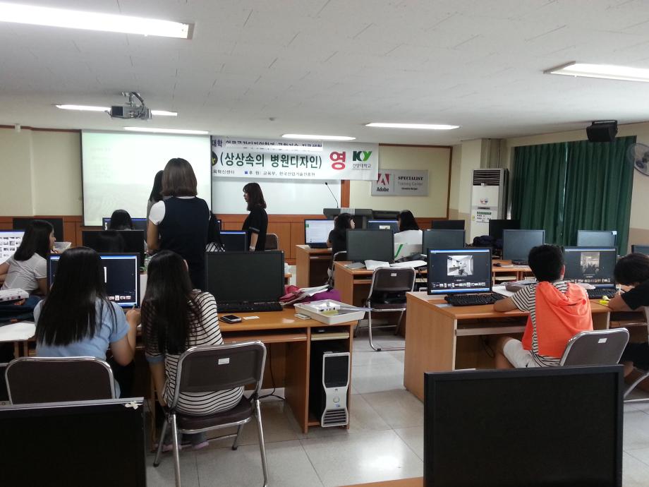 7.13(토) 고등학생 대상 진로체험캠프가 있었습니다 ^^ 저희학과에서는 `힐링디자인 Talk`라는 주제로 진행 되었습니다~ 치과를 대상으로 공간설계를 해보는 시간이었는데요 ^^ 우리친구들 매우 열심히 해줬고 즐거운 시간이었습니다~ 2학년 멘토 언니, 오빠들이 친구들을 열심히 도와주고있네요? ㅎㅎ
