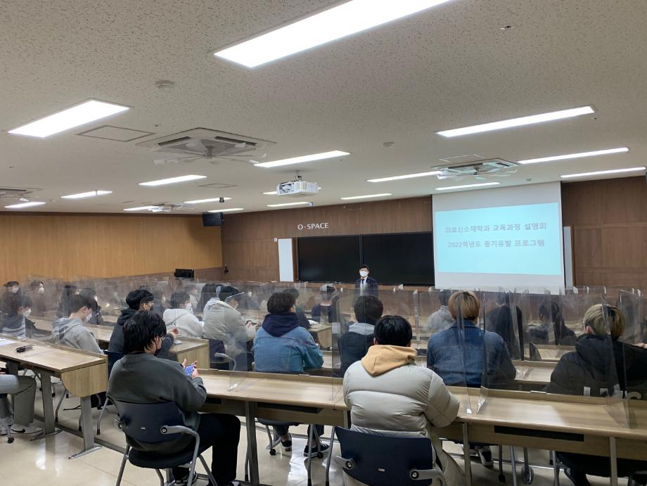 2022학년도 동기유발학기 의료신소재학과 교육과정설명회를 진행하였습니다.
