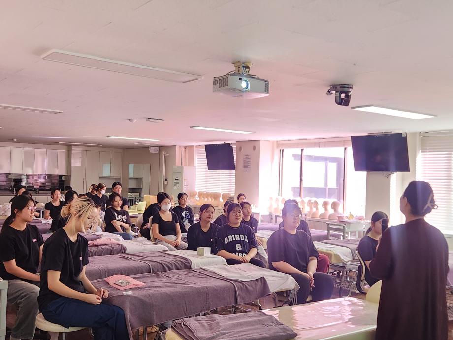지난 10월 4일 약손명가 김현숙 대표님께서 건양대 글로벌의료뷰티학과에 방문해 주셔서 1학년을 대상으로 진로 및 실기 특강을 진행해 주셨습니다^^