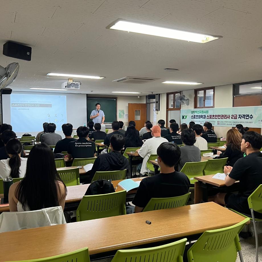 [스포츠안전관리사 2급 자격 과정] 안녕하세요. 건양대학교 스포츠의학과 학생회입니다! 2024년 9월 20일, 9월 27일 이틀 간 스포츠안전관리사 2급 자격 과정을 진행했습니다. 학교의 대학혁신지원사업의 예산 지원을 받고, 학생들의 교육비 등 일체 비용을 학교에서 지원을 받아 교육을 진행했습니다. 스포츠안전관리사는 스포츠 행사에서 필요한 기본 내용으로 대한 체육회를 비롯한 시군구 체육회에서 진행하는 스포츠행사에 안전 인력으로서 활동할 수 있는 자격 과정입니다! 본 자격과정은 스포츠안전재단에서 실시하는 과정으로 진행하였습니다. 앞으로도 스포츠의학과 학우들의 진로와 미래를 위한 자격과정 수 업들을 위주로 개최할 예정입니다. |