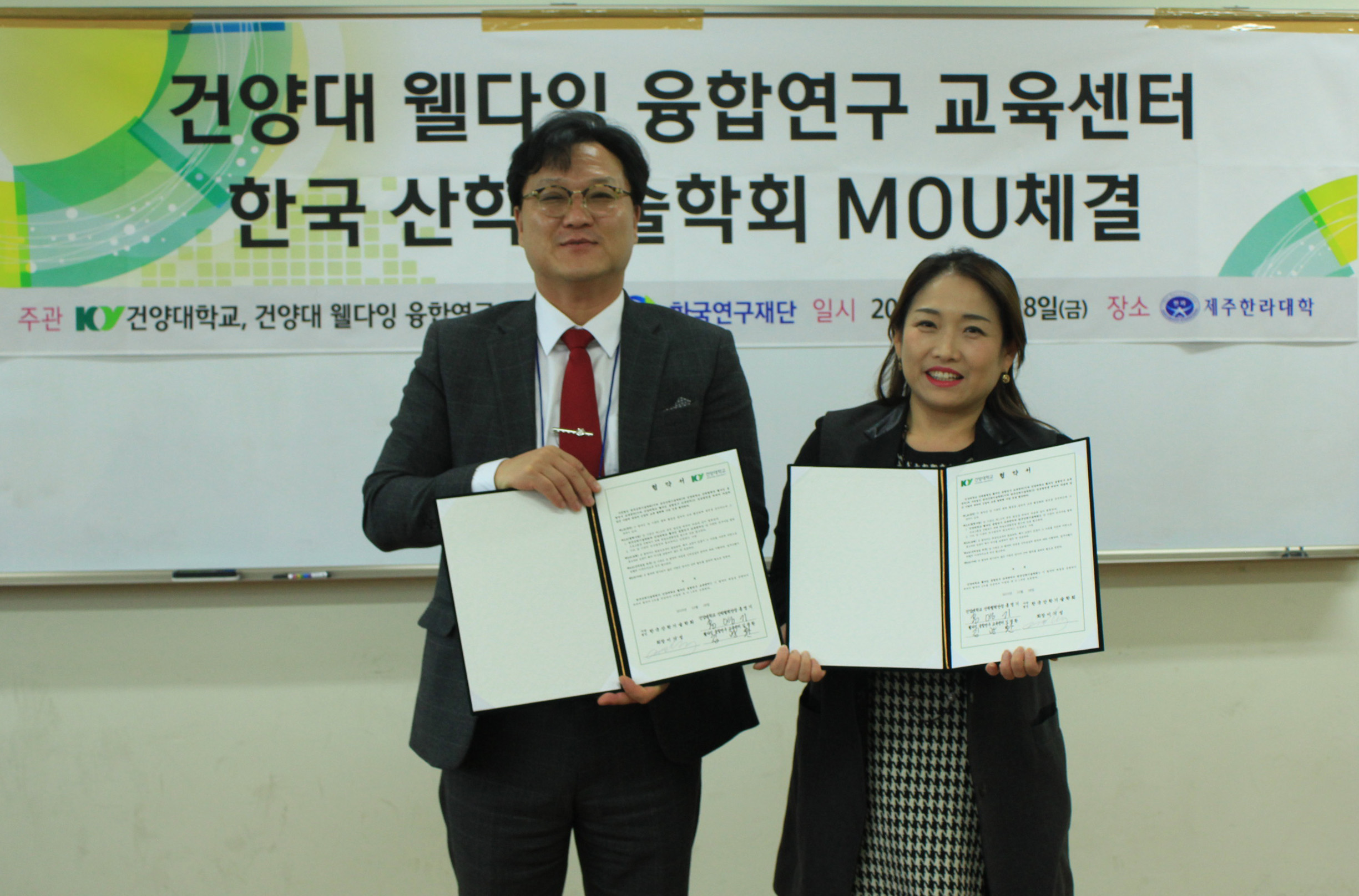 건양대, 한국산학기술학회 MOU 체결 건양대학교(총장 김희수) 웰다잉 융합연구 교육센터가 한국산학기술학회(회장 이기성)과 학술교류를 위한 협약을 체결했다 지난 18일 제주 한라대학교에서 개최된 한국산학기술학회 추계학술대회에서 진행된 이번 협약은 웰다잉 교육 활성화 및 사회적 인식 구축을 위해 이뤄졌다.