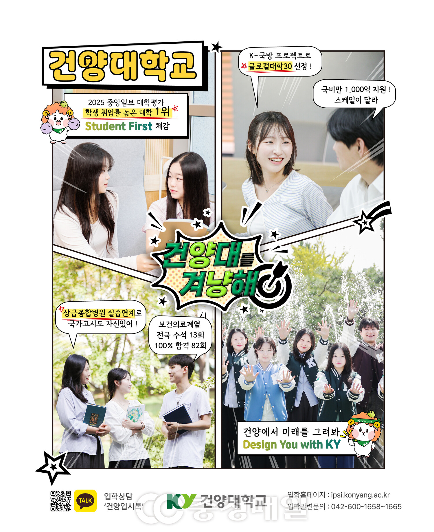 [충청매일 전철세 기자] " 2025년 ‘취업률 전국 1위’ 건양대, 독보적인 ‘학생 성공 신화’ 쓰다" 건양대학교(총장 김용하)가 2025년 중앙일보 대학평가에서 ‘학생 취업률 높은 대학 1위’라는 놀라운 성과를 거뒀다. 이 수치는 단순한 기록 그 이상으로, 설립자 김희수 명예총장이 강조해온 "가르쳤으면 끝까지 책임진다"는 교육 철학과 김용하 총장의 ‘Student First’ 정책이 학생들의 실제 성공으로 이어졌다는 증거다. 건양대는 ‘취업 명문’이라는 명성을 확실히 지키며, 2024년 글로컬대학 선정에 이어 또 한 번 빛나는 결과를 만들어냈다. ■ ‘최고보다 유일함’… 학생의 성장을 함께 밝히다 건양대는 전국 최초의 취업 전용 센터 설립을 시작으로, 동기유발학기와 융합전문 단과대학, 의료공과대학 등 끊임없이 혁신을 시도해왔다. 학생 개개인의 미래를 스스로 설계하도록 돕는 ‘Design You(DY)’ 교육 모델이 그 중심에 자리잡고 있다. 입학과 동시에 DYV(Design Your Vision) 진로 캠프를 통해 학생들은 자신의 비전을 명확히 하고, KY큐레이터 및 빅데이터 기반 AI-PathFinder 시스템의 맞춤형 가이드도 받는다. 2026학년도부터는 K-국방 분야에 특화된 DYV 모델을 학점화하여 그 중요성을 더욱 강조할 예정이다. DYT(Design Your Talent), DYC(Design Your Class), DYD(Design Your Degree) 등 단계별 DY 프로그램을 통해 학생들이 ‘대학이 정해준 과정’이 아닌 ‘내가 설계한 대학 생활’을 주도하며 진로 확신을 얻도록 지원한다. 특히 DYC는 기업 프로젝트, 지역사회 문제 해결형 과제, 해외대학 연계 프로젝트 등을 결합한 실전형 교육으로 자리매김하여, 2025년에는 학생, 교수, 기업이 함께 참여하는 성과보고회가 개최되며 전국 대학의 벤치마킹 사례로 주목받고 있다. 이러한 노력 덕분에 건양대는 교수연구, 취업률, 중도포기율, 평판도 등 다방면에서 지난 10년간 비약적인 발전을 이루며 중앙일보 대학평가 ‘성장대학 3위’에 이름을 올렸다. 대학 경쟁력의 ‘속도’와 ‘방향성’을 모두 잡았다는 평가다. ■ ‘데이터로 증명’된 취업 경쟁력! 국가고시에서도 두각 건양대의 취업 경쟁력은 압도적인 데이터로 증명된다. 최근 5년 평균 취업률 75% 이상을 꾸준히 유지했으며, 2024년 고등교육기관 졸업자 취업통계조사에서는 전국 대학 평균과 비수도권 대학 평균을 훨씬 웃도는 75.8%의 취업률을 기록했다. 2023년에는 77.7%를 기록하며 높은 취업 성과를 보였다. 특히 대전 메디컬캠퍼스와 건양대학교병원을 연계한 의료 융복합 클러스터는 보건의료 분야에서 탁월한 성과를 창출하고 있다. 지난 16년간 무려 13회에 걸쳐 보건의료계열 국가고시 전국 수석을 배출하며 ‘보건의료 강자’로서의 위상을 확고히 했다. 의사, 간호사, 방사선사, 임상병리사, 물리치료사 등 다양한 보건계열 국가고시에서 최상위권 합격률을 자랑하며, 대학 의료기관이 학생 교육, 실습, 취업으로 이어지는 선순환 구조의 핵심 인프라 역할을 톡톡히 해내고 있다. 최신 채용 트렌드에 발맞춘 맞춤형 취업 지원 시스템도 건양대의 자랑이다. AI 기반 1:1 컨설팅은 물론, 실전과 같은 면접 감각을 익히는 셀프뷰 면접 경진대회, 취업 역량 강화캠프 등 학생들이 자신감 있는 전문가로 성장하도록 돕는 다채로운 프로그램을 운영하고 있다. 이러한 학생 중심의 교육과 지원 시스템은 ‘국가품질경영상 교육부문 대통령표창’과 ‘한국경영대상 인재육성 부문 수상’ 등 대외적으로도 높은 평가를 받고 있다. ■ K-국방 선도대학, 미래 대한민국을 이끌다! 2024년 교육부 글로컬대학30 사업에 대전·세종·충청 지역에서 최초이자 유일하게 단독 선정된 건양대는 ‘지역과 함께 세계로, K-국방산업 선도대학’이라는 비전 아래 새로운 도약을 준비하고 있다. 논산 글로컬캠퍼스를 중심으로 대학 체제를 국방산업 중심으로 혁신하며 미래 대한민국을 이끌 인재 양성에 박차를 가할 계획이다. K-국방 산학협력 허브화, K-국방 인재 양성을 위한 교육 혁신, 개방을 통한 지역과 대학의 글로컬 성장이라는 3대 전략과 9대 세부 과제를 강력히 추진하고 있으며, 2026학년도부터는 유무인항공학과, 식품생명공학과 등 신설 학과 및 학과 재편성을 통해 국방산업 현장에 바로 투입 가능한 융합형 인재 양성에 매진할 예정이다. 논산과 대전 캠퍼스의 이원화 전략으로 보건의료계열과 국방산업 인재 육성을 동시에 강화하여 ‘취업 명문’의 전통을 이어갈 계획이다. 또한 충남·대전 지역혁신중심 대학지원체계(RISE) 사업을 통해 스마트팜, K-국방, 의과학자 양성, AI 의료 융합 교육 등 지역 산업 수요 기반 융합형 인재 양성에도 적극 나서고 있다. ‘Discover World’와 같은 해외 교육 프로그램으로 학생들이 글로벌 역량을 키우도록 지원하며 세계를 향한 기회를 제공한다. 건양대는 ‘K-국방 + AI데이터 + 의료바이오’ 3대 축을 기반으로 한 신산업 대응력으로 ‘성장대학’ 상위권에 오르는 핵심 요인을 구축했다. AI·SW 교육 분야에서도 인공지능학과 첫 졸업생 전원 취업·대학원 진학 성공, SW중심대학 기반 데이터·AI·의료바이오 융합 전공 확대로 빠르게 성장 중이다. 김용하 총장은 "입학하는 순